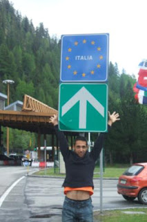 11 de Mayo: A las cinco de la mañana se formó una tormenta que daba pánico, a to’ leche recogemos y al abrigo de una gasolinera que no había abierto, hicimos el desayuno, colocamos las tiendas que las habíamos guardado al barullo y nos dirigimos al túnel del Mont Blan, para pasar a Italia al Valle de Aosta.