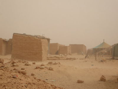 Son el lugar más inhóspito que he conocido; todo es arena, mires por donde mires, salpicada de Haimas y de casetas de barro y uralita mimetizadas con el paisaje. A pesar de esto, las ganas de vivir de esta gente unida a las ayudas desinteresadas de gran número de asociaciones han conseguido dotar a estos campamentos de escuelas, un hospital, instalaciones deportivas,… aunque nada parecido a lo que estamos acostumbrados en éste, nuestro “primer mundo”.