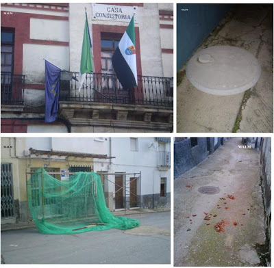 Sorprendentemente la noche del sábado pasabas por la plaza del pueblo, y te encontrabas una de las banderas que ondean en el balcón del ayuntamiento, en mitad de la plaza, y otra de ellas caída sobre el balcón, o por la Calle Calzada rica o Golondrinas, tejas de tejados en el suelo, protectores de obras volados de sus andamios, o incluso tapaderas de depósitos de agua de los tejados de torrejoncillo, que como sabéis y para los que no servían para almacenar agua en las casas en tiempos de sequía.