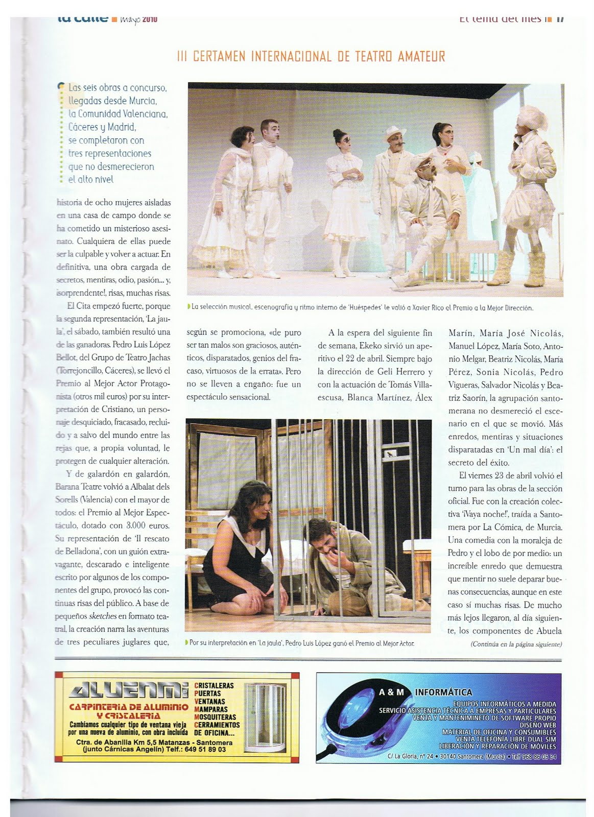 La revista “La Calle”, de la región Murciana se hace eco del certamen de Santomera y por supuesto de la presencia de nuestros paisanos al igual que los demás participantes. Estas son las imágenes de la revista y la gala de entrega de premios cedida por la organización del mismo.