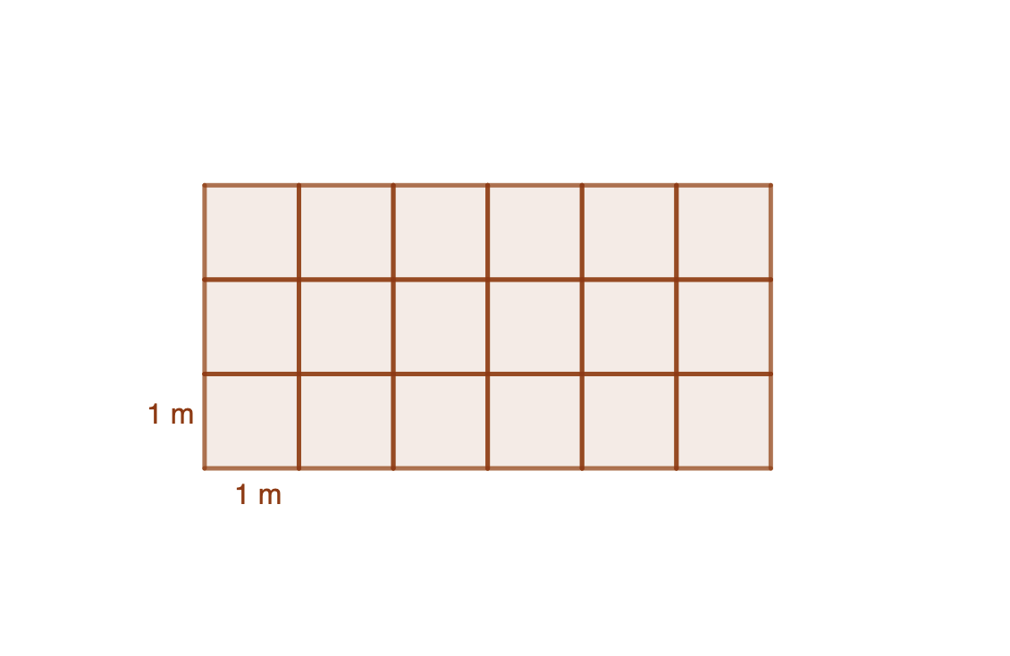 Según lo anterior se trataría de sumar las áreas de los cuadraditos de 1 metro cuadrado en los que se divide el rectángulo. Éste concretamente está formado por 18, por lo que su área podríamos decir que es de 18 metros cuadrados.