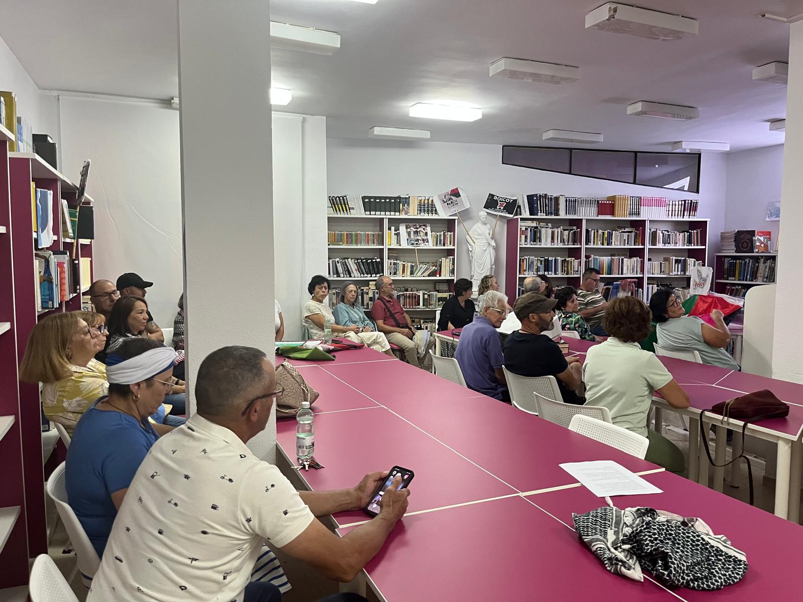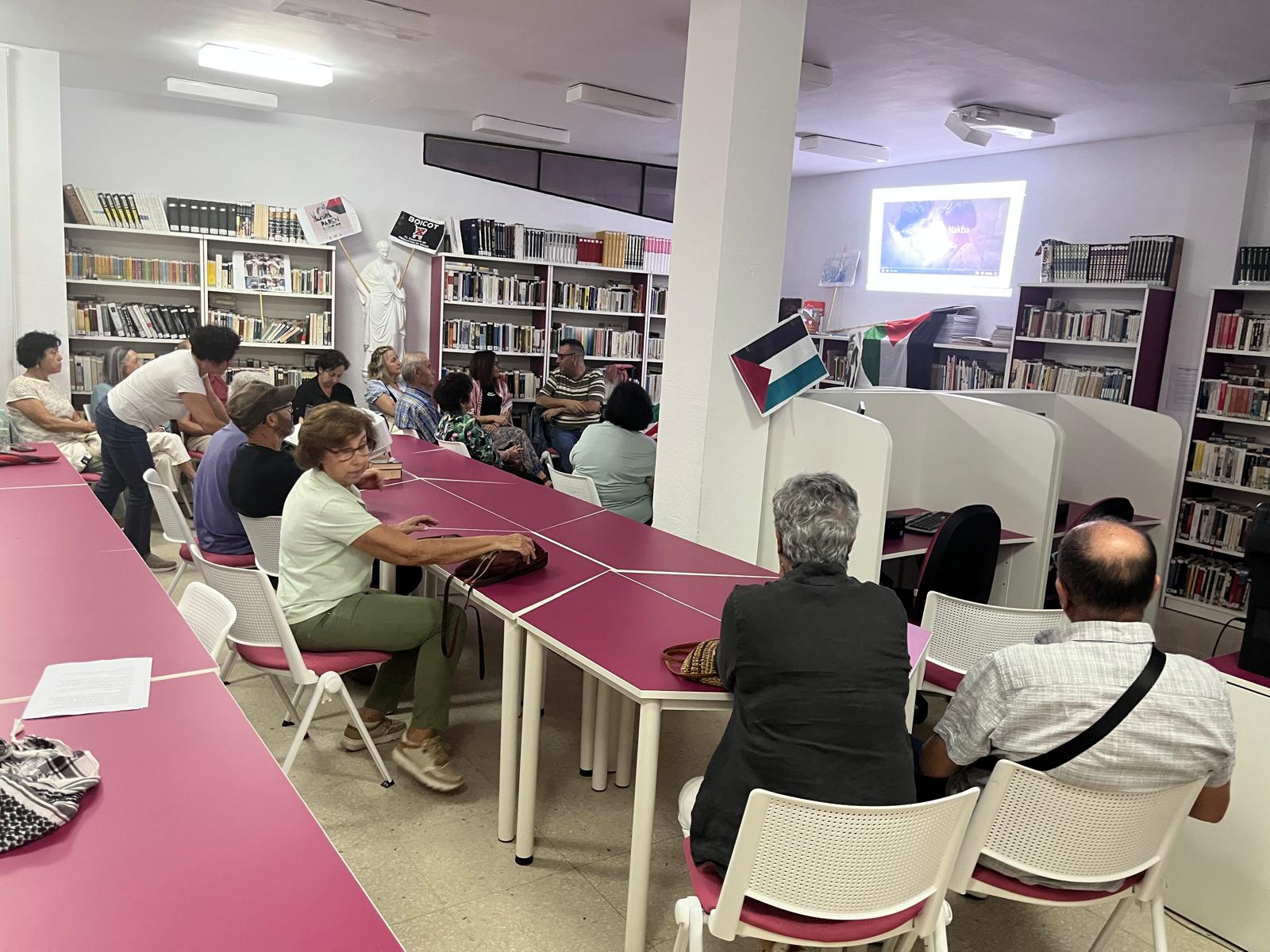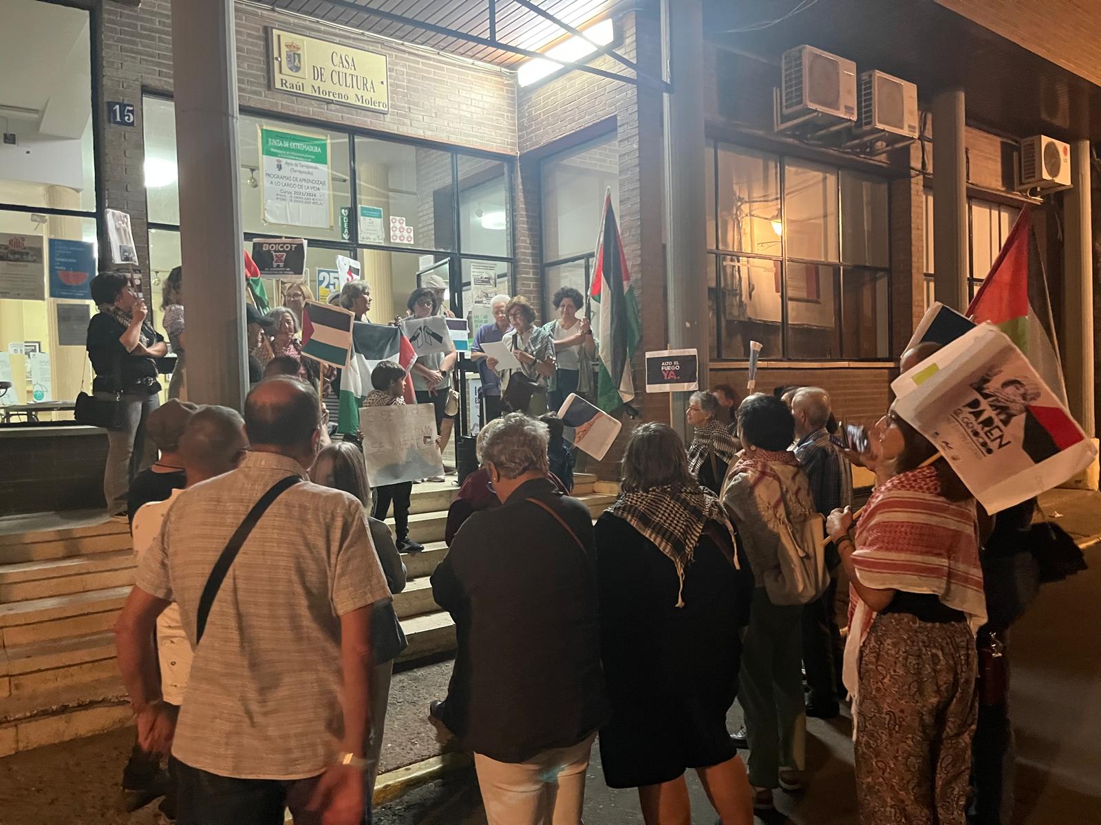 Tras un pequeño debate, salimos a concentrarnos en la puerta de la Casa de Cultura en protesta contra el bloqueo de la Global Sumud Flotilla que pretendía la necesaria apertura de un corredor humanitario en la Franja de Gaza y exigir poner fin a la barbarie contra el pueblo palestino.