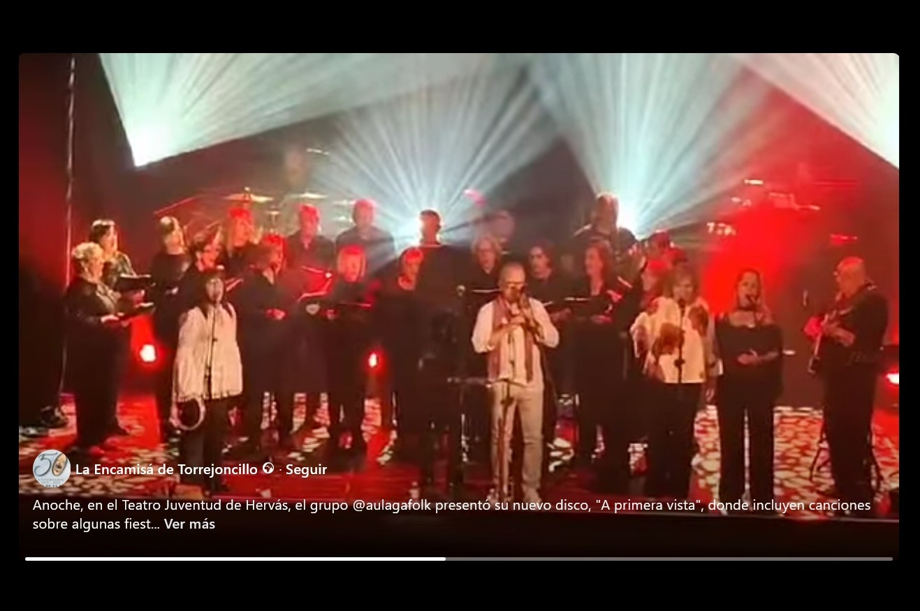 El pasado 18 de octubre, en el Teatro Juventud de Hervás, el grupo Aulaga Folk presentó su nuevo disco, «A primera vista», donde incluyen canciones sobre algunas fiestas extremeñas entre ellas, La Encamisá de Torrejoncillo.