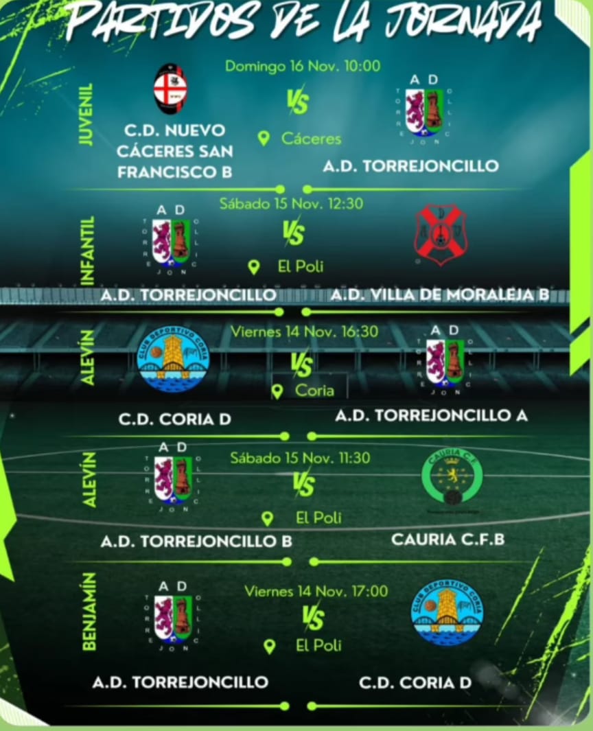 Segunda División Infantil Judex Grupo 2, el AD Torrejoncillo perdía 5-0 contra el CP San Miguel de Plasencia y 8-2 contra el AD Nuevo Plasencia. Este fin de semana, el día 15 a las doce y media, contra la Villa de Moraleja AD “B” será nuestro próximo encuentro. Somos sextos en la clasificación.
