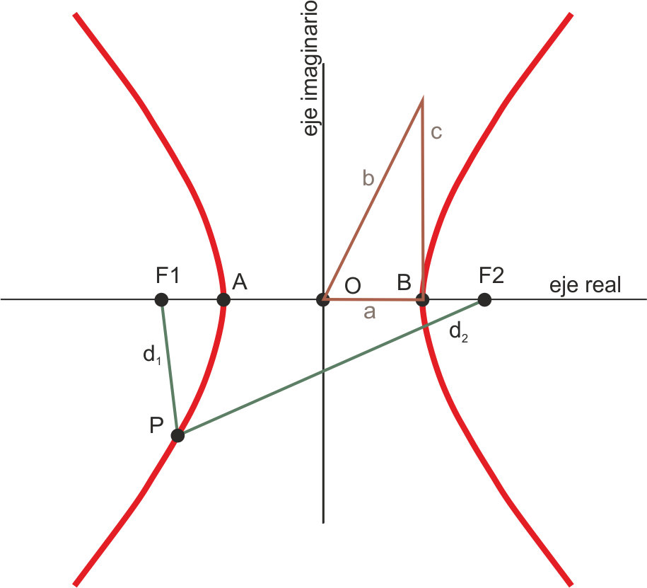 Y por último las hipérbolas se caracterizan por ser cónicas de dos ramas abiertas, definida como el lugar geométrico de puntos donde la diferencia de distancias a dos puntos fijos (focos) es constante (d2 – d1).