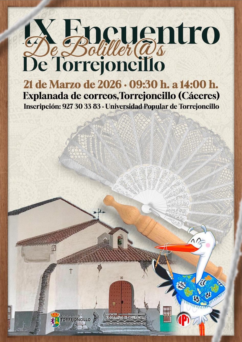 Organizan: Universidad Popular de Torrejoncillo, Ayuntamiento de Torrejoncillo y Asociación de Bolilleras de Torrejoncillo.