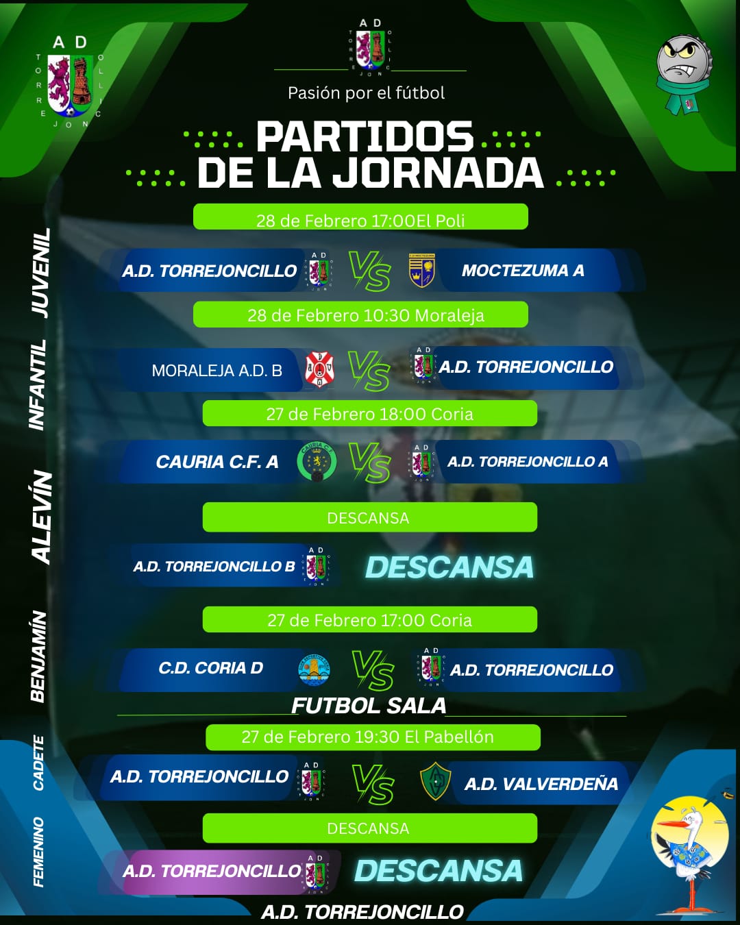 La categoría Cadete del AD Torrejoncillo de la Segunda de Futbol Sala Judex, Grupo 3, en los últimos encuentros los resultados fueron 8-3 perdido contra el ED Unión Fresnedosa ACZ, el viernes 27 nos enfrentaremos a las 19:30 en el Pabellón Municipal a AD Valverdeña. Somos novenos en la clasificación.