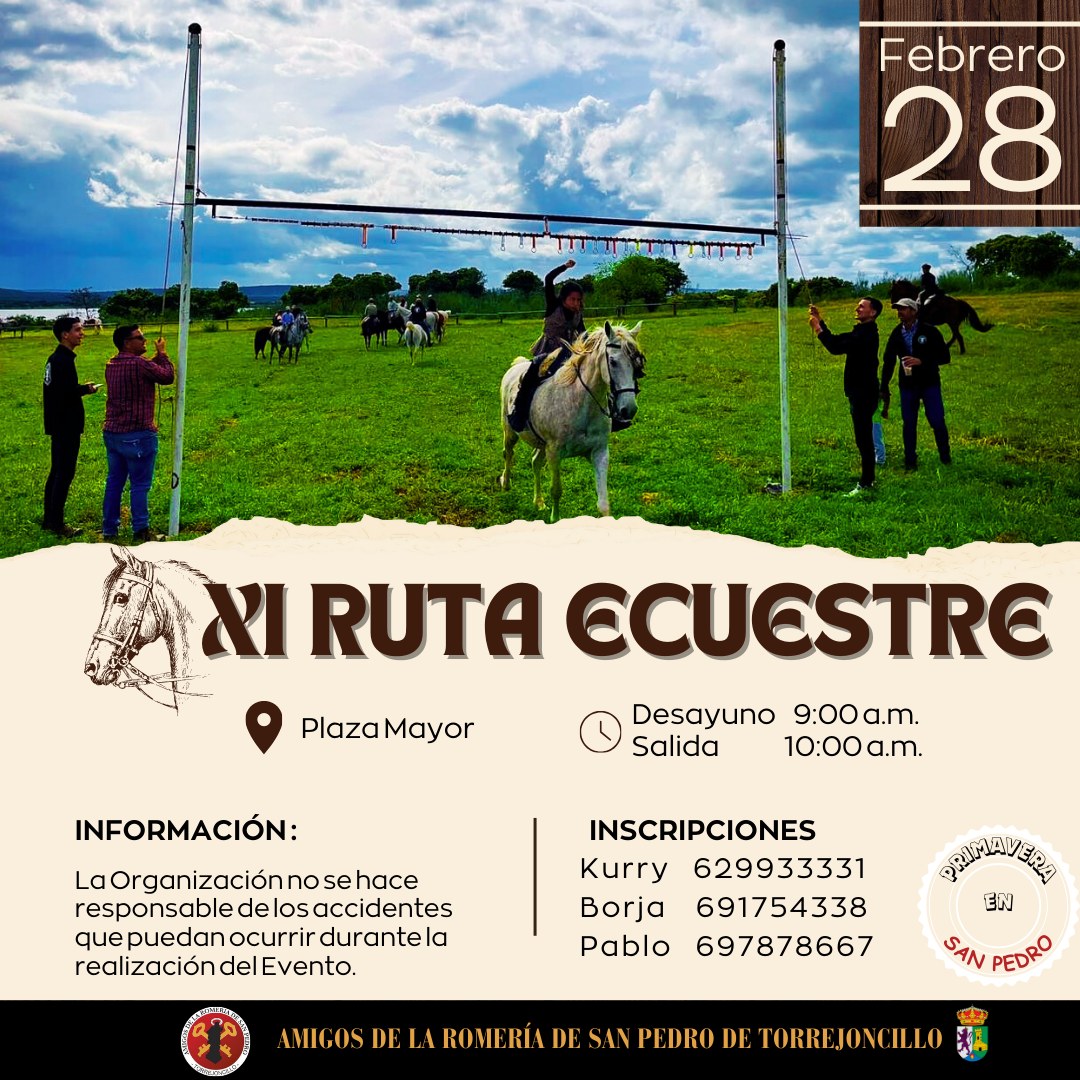 En Colaboración con la Asociación Ecuestre «La Espuela», Ayuntamiento de Torrejoncillo y el Bar de San Pedro, desde nuestra Asociación estamos organizando una Ruta Ecuestre para el próximo 28 de Febrero.