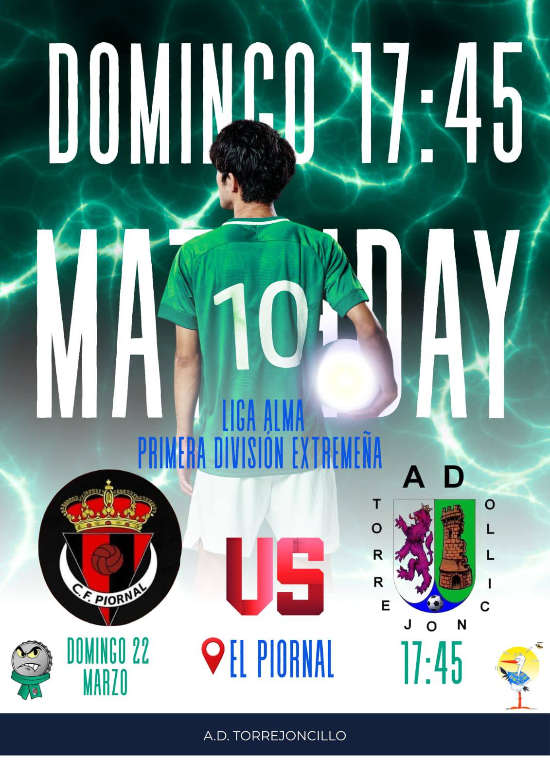 AD Torrejoncillo de la Primera Regional, Grupo Alma, el fin de semana pasado perdíamos por 0-1 contra el CP Cabezuela. Este domingo, 22 de marzo a las 17:45 nos desplazamos para enfrentarnos al CF Piornal. Somos decimo cuartos en la clasificación.