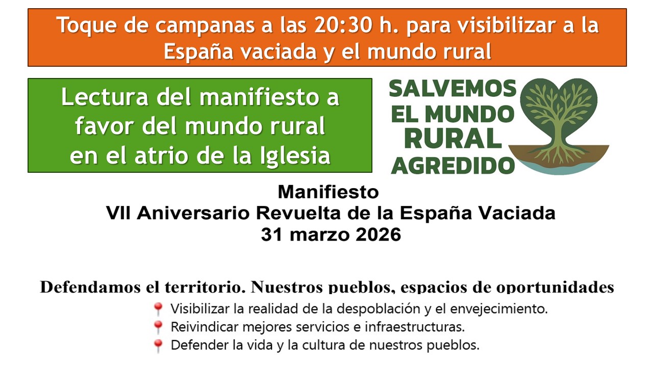 Se llevarán a cabo un toque de campanas y la lectura del manifiesto a favor del mundo rural en el atrio de la Iglesia de San Andrés Apóstol.