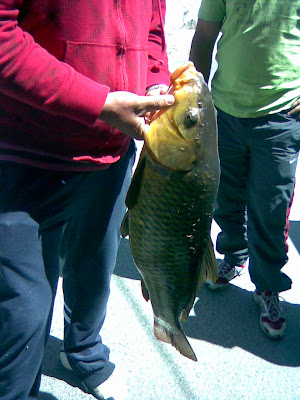 No le fue nada mal a la partida de pescadores que se acercaron el primero de mayo a echar las cañas al pantano del Pedroso de Acim. Jose Mari Pérez, Jose Mari hijo, Luis Alberto «Poteco» y Javi se trajeron algo más de 20 kg. de pesca, entre ellas esta carpa que aparece en la imagen de 8,5 kg.